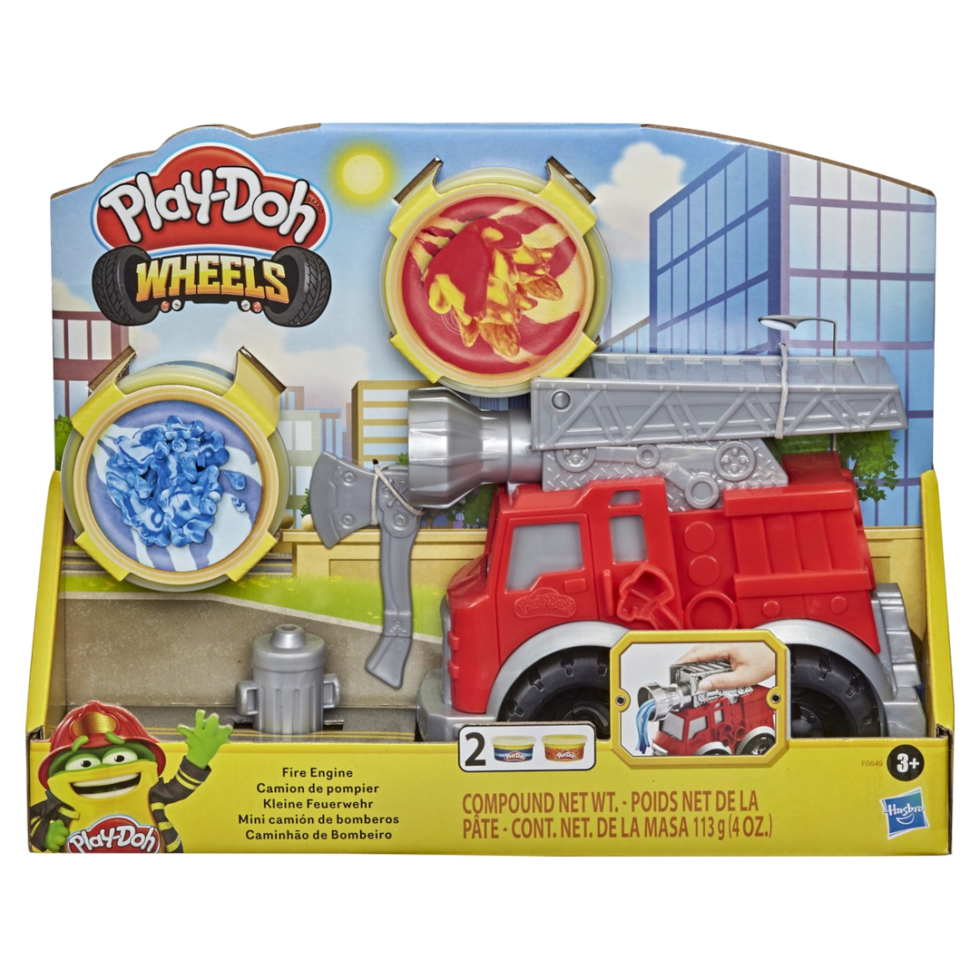 Blus alle brandjes met deze Play Doh Wheels brandweerwagen. Voor alle brandweer jongens en meisjes die van klei brandweerslangen, waterslierten en andere vormen willen maken. Door klei in het waterkanon te doen blus je elk Play Doh vuurtje met nep water. Aan de zijkant van de brandweerwagen zitten mallen voor brandweerman badges en overige vormen. Daarnaast kun je ook oefenen met knippen met de bijgeleverde schaar. Geschikt voor kinderen vanaf 3.